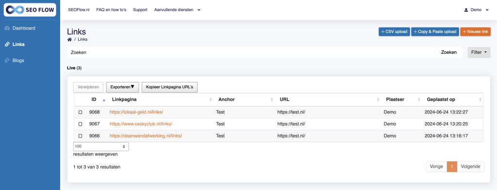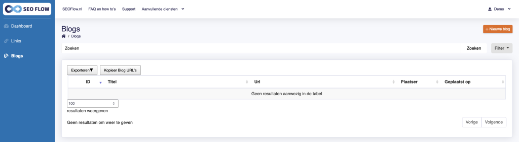 Welkom bij de demo omgeving van SEO Flow! Hier kunt u gratis links en blogs plaatsen op een aantal geselecteerde websites om te ervaren hoe eenvoudig en effectief ons systeem werkt. Ontdek zelf waarom SEO Flow de essentiële tool is voor elke linkbuilder.