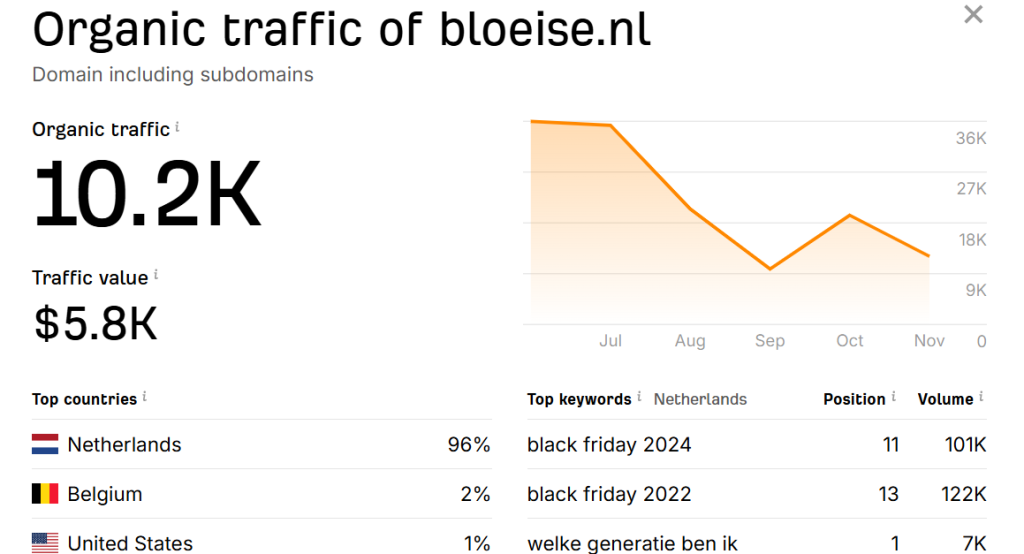 Let op: dit is wel allemaal giswerk van Ahrefs. Wat je er vooral uithaalt: